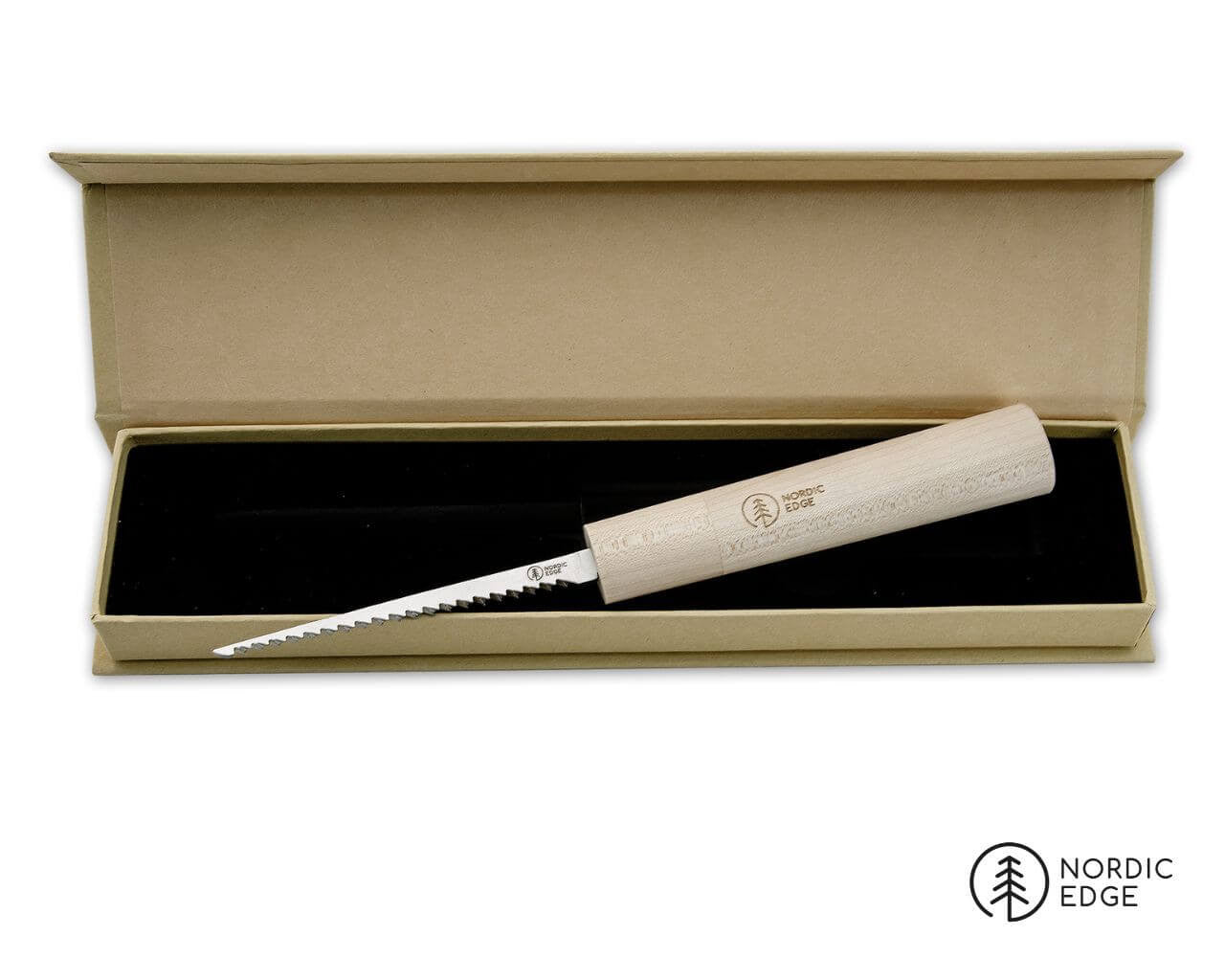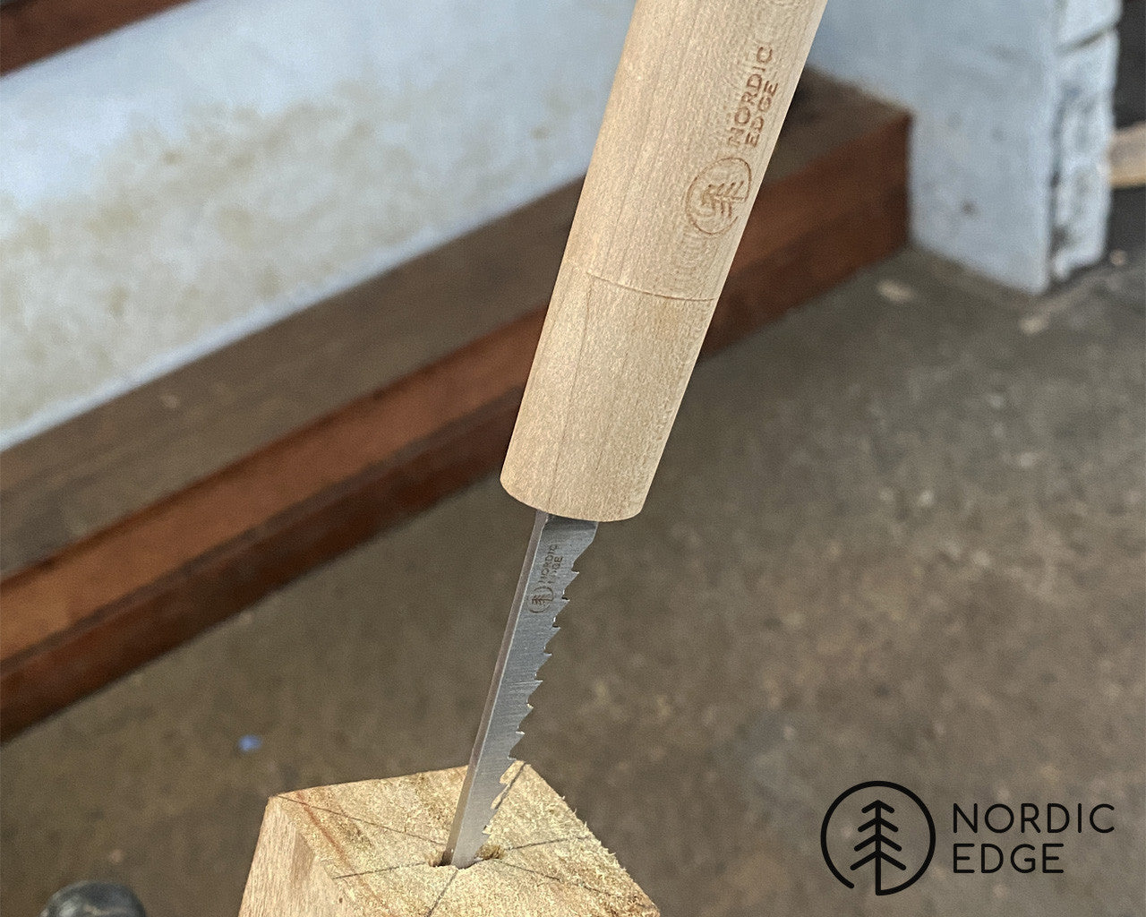 The sharp section of the blade is about 96 mm x 2.6 mm with the Nordic Edge logo lasered on.